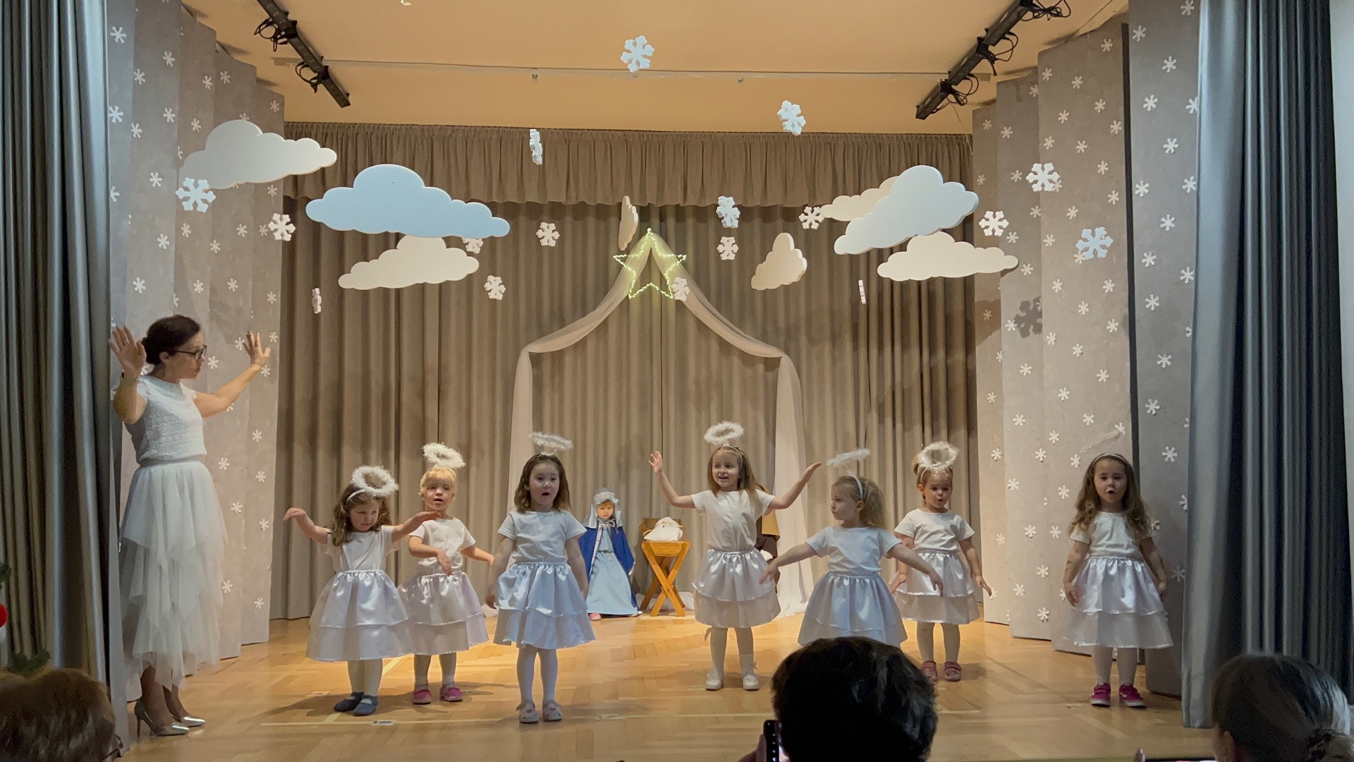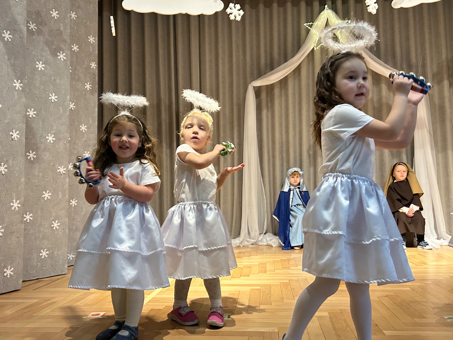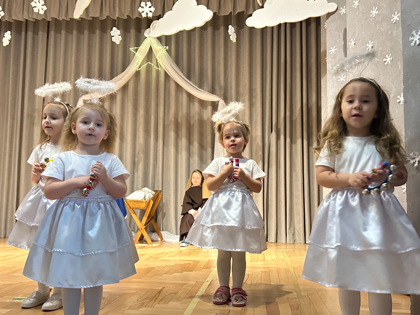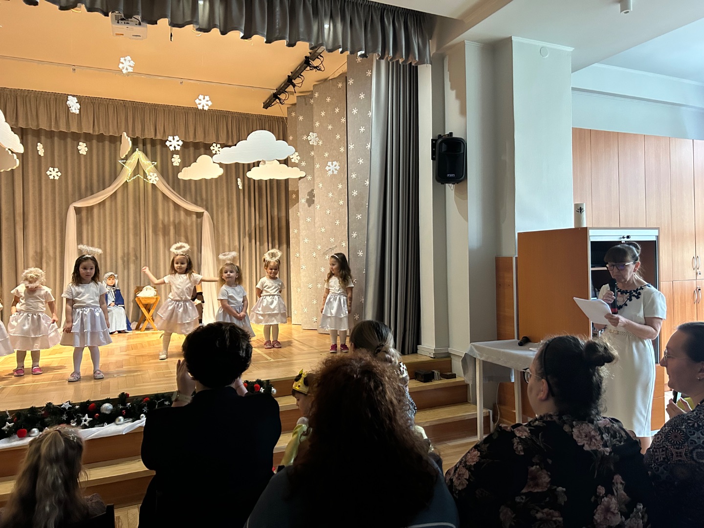 Dnia 12 grudnia 2025 w piątkowe przedpołudnie Przedszkolaki z grupy Biedronki wystąpiły w przedstawieniu Bożonarodzeniowym dla swoich rodziców i bliskich. Ich występ wprowadził gości w świąteczną i pełną wzruszeń atmosferę. Na koniec aktorzy otrzymali ogromne i zasłużone brawa od publiczności.